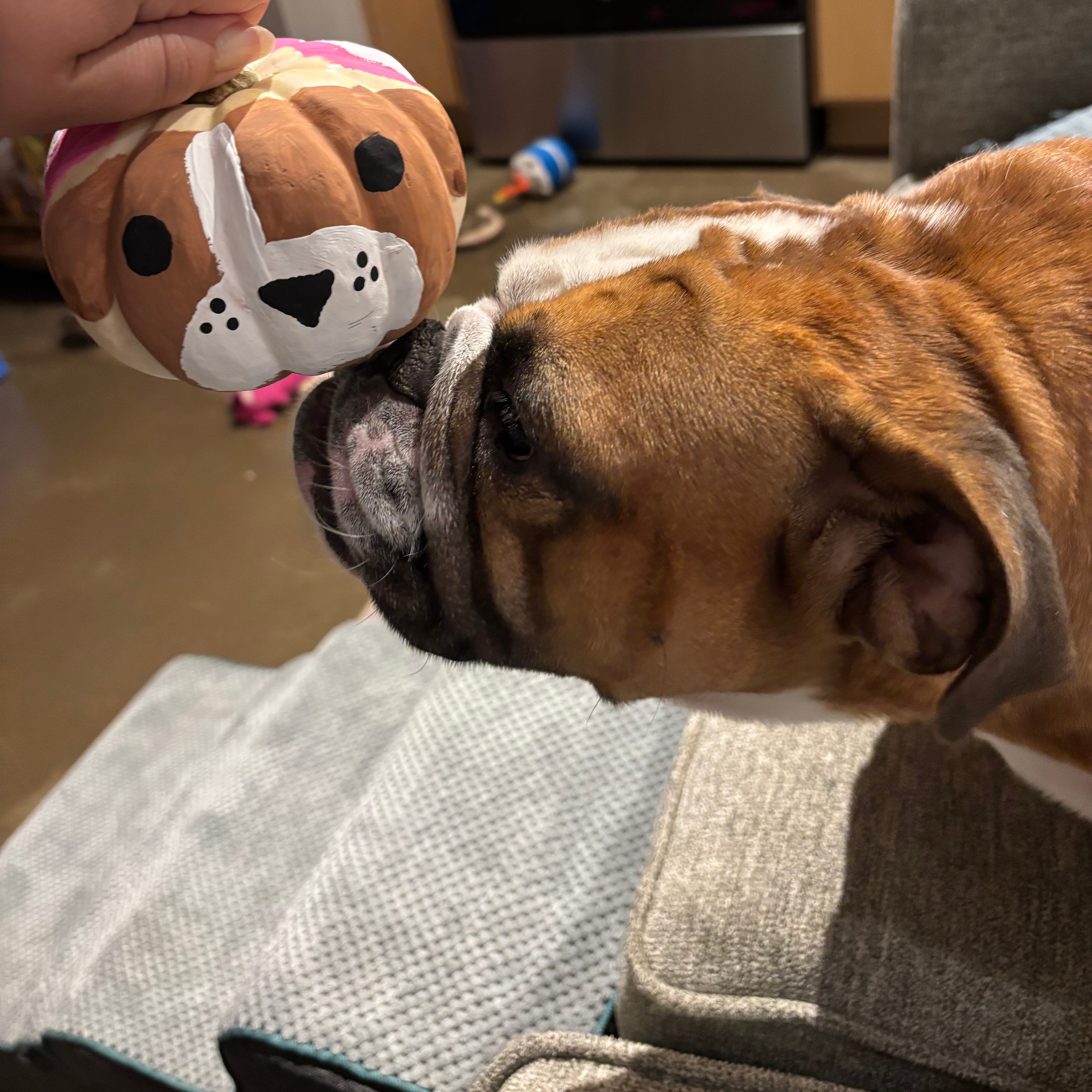 Paisley is an almost four-year-old English Bulldog who loves her orange Chuckit! ball and chicken more than her parents most days. She primarily lives with her dad, but occasionally makes a daring escape to join me, her mami, in the Twin Cities.